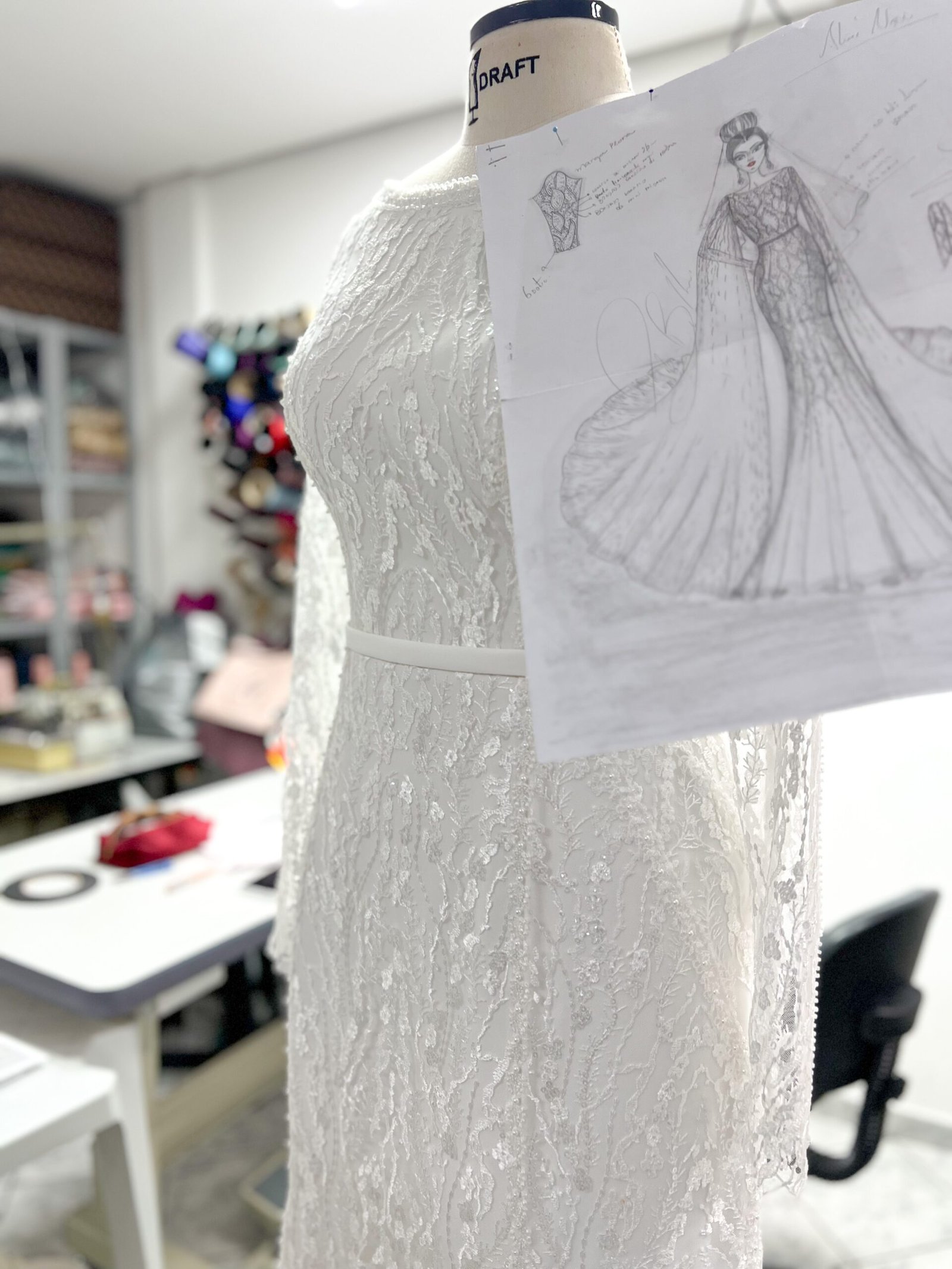 “Eu apresentei os modelos para o Paulo [estilista] e com o seu conhecimento, ele foi me mostrando alguns detalhes, o que ficaria melhor, detalhes personalizados. E todos abraçaram a ideia de produzir os dois vestidos”.